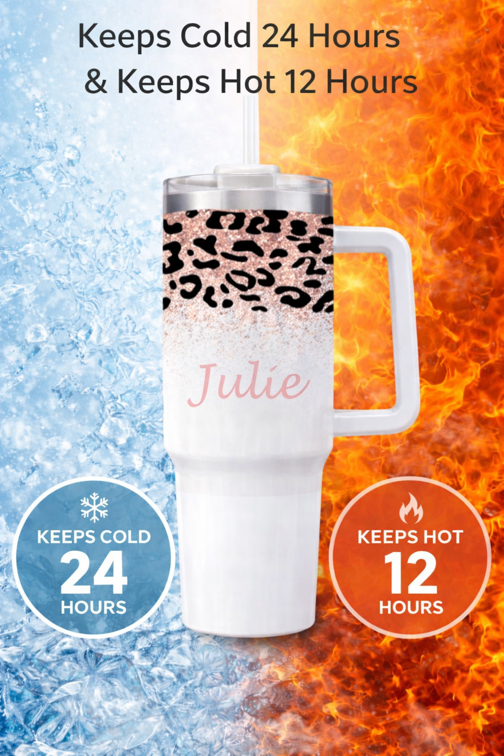 Built for both style and function, this insulated tumbler helps keep your drinks cold for up to 24 hours and hot for up to 12 hours, making it perfect for busy days, travel, or relaxing at home. The comfortable handle and included straw make it easy to carry and sip on the go, while the high-quality design ensures long-lasting durability.