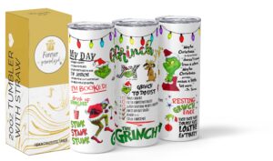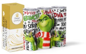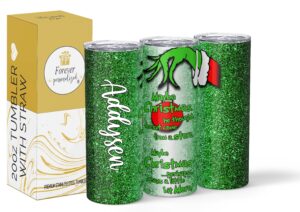 20oz tumblers made of premium stainless steel, personalized with a name, and includes lid& reusable straw. Available in multiple unique designs, perfect for anyone who loves the holidays with a touch of humor and style. Each Tumbler is made of premium stainless steel, keeping your drinks hot or cold for hours.