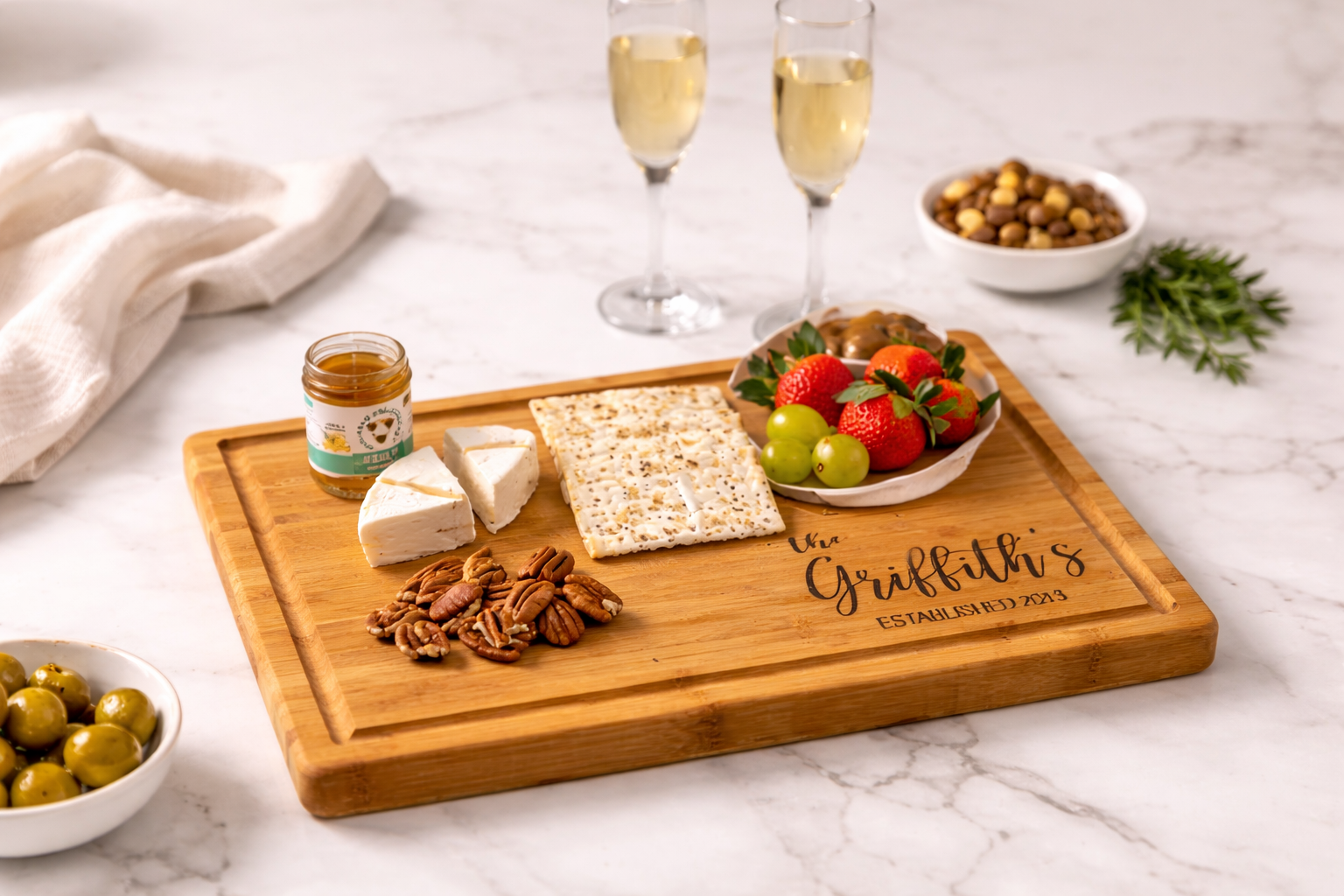 FOREVER PERSONALIZED – Our Custom, Cutting Board, Charcuterie Board, makes for an excellent, Valentines Day Gift, Christmas Gift, Holiday Gift, Romantic Gift, Engagement Gift, Wedding Gift, Anniversary Gift.